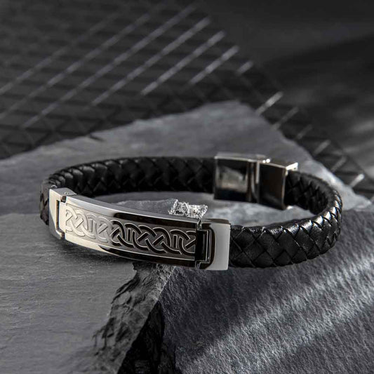 Irish Bracelet | Stainless Steel Men's Black Leather Celtic Bracelet