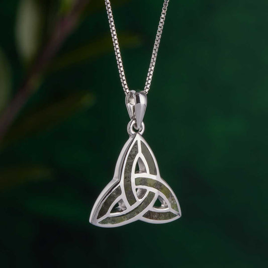 Celtic Pendant - Sterling Silver and Connemara Marble Trinity Knot Pendant with Chain