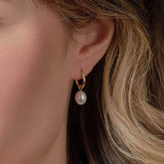 Irish Earrings | 9k Gold Horseshoe Huggie Pearl Drop Earrings