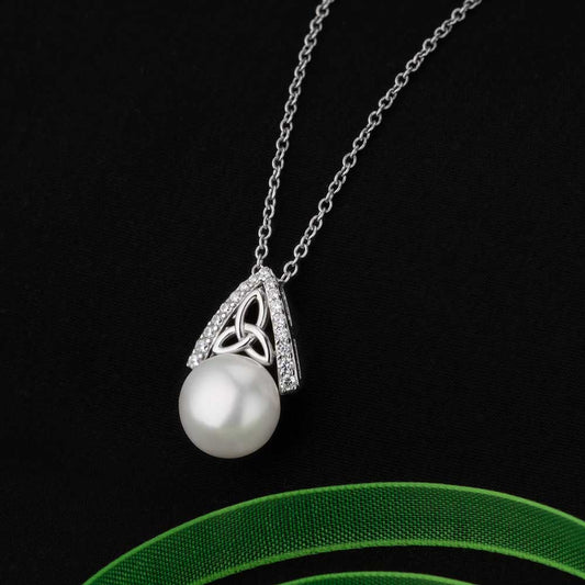 Irish Necklace - Sterling Silver Pearl Celtic Knot Pendant