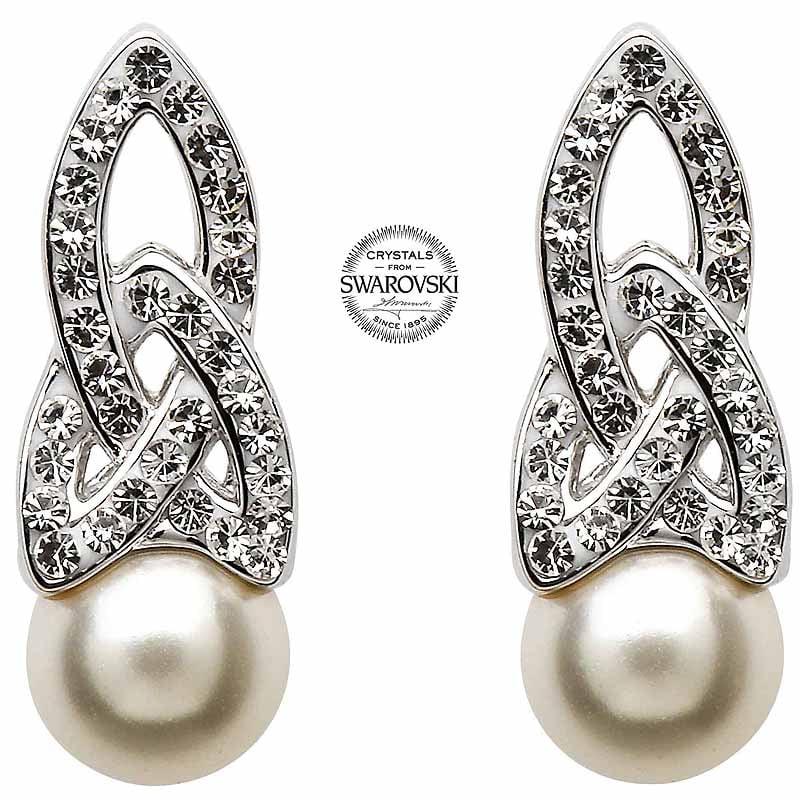 Celtic Earrings - Sterling Silver Celtic Pearl Earrings Adorned by Swarovski Crystals