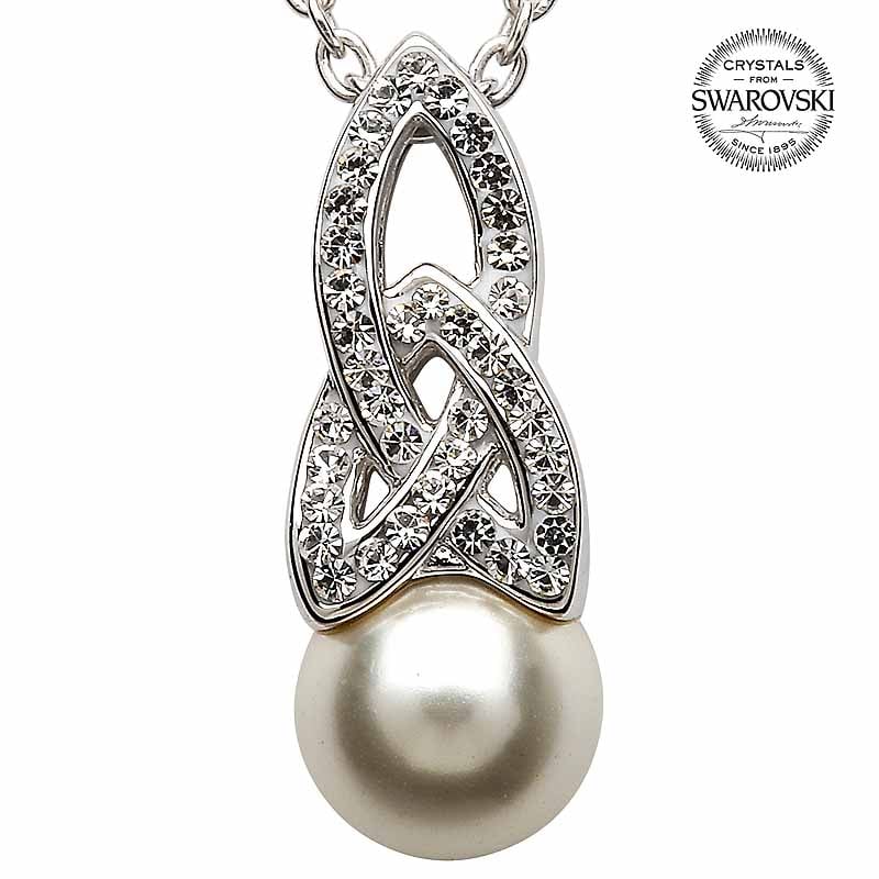 Celtic Necklace - Sterling Silver Celtic Pearl Pendant Adorned with Swarovski Crystals