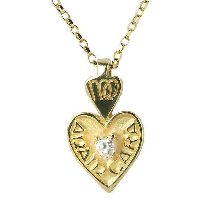 Beautifully crafted, this meaningful 10k Irish Necklace is a perfect gift. The heart shaped pendant has a set crystal center and is engraved with Mo Anam Cara - "My Soul Mate". Width: .5 inch Height: .8 inch. This pendant is made to order. Please allow approx. 10-14 working days for this item to be completed.