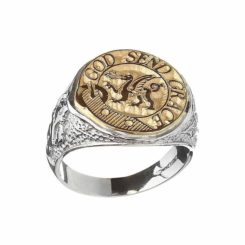 Celtic Ring - Coat of Arms Sterling Sterling Silver and 10k Gold Mens Solid Scottish Clan Ring