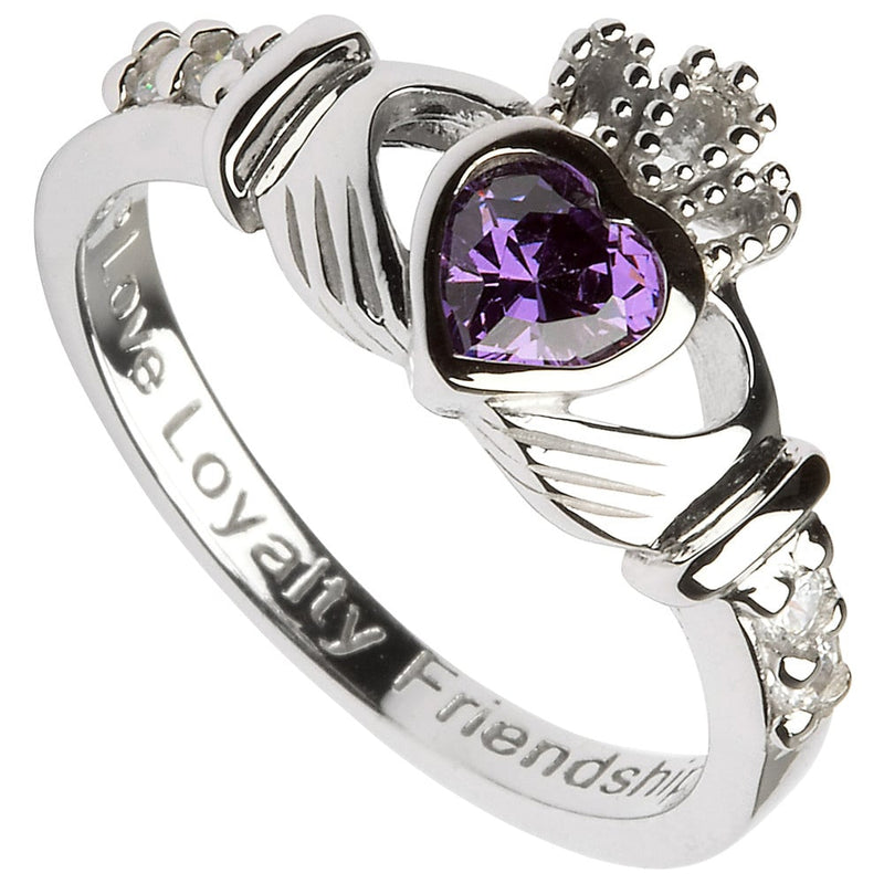 Claddagh Ring - Sterling Silver Birthstone Claddagh