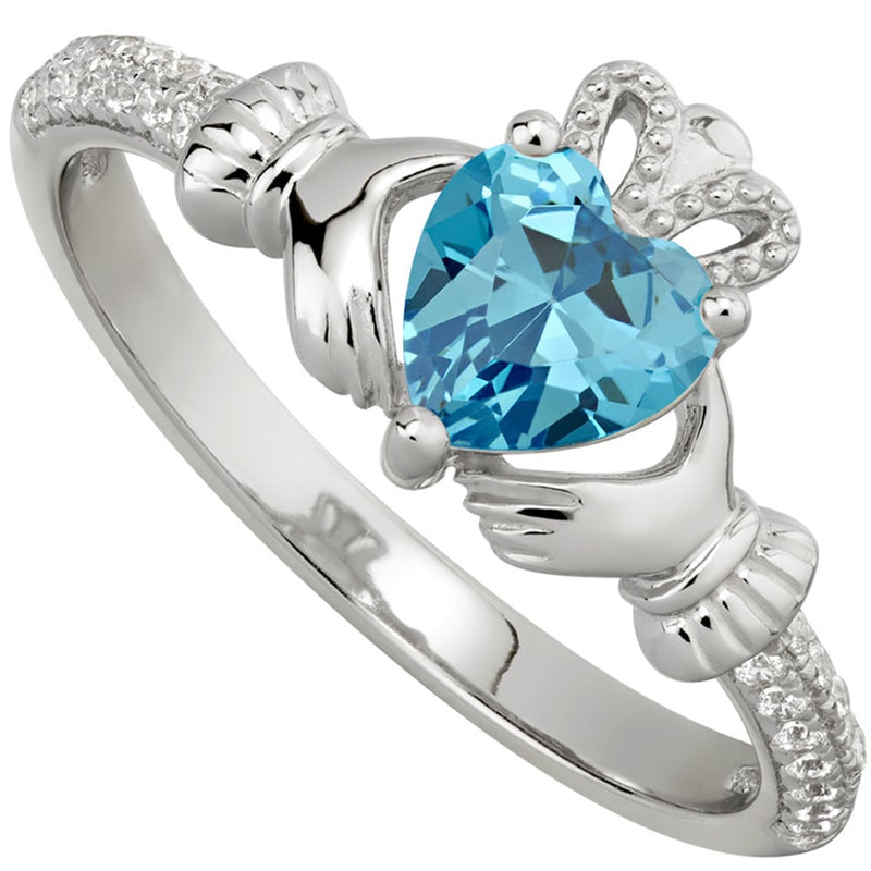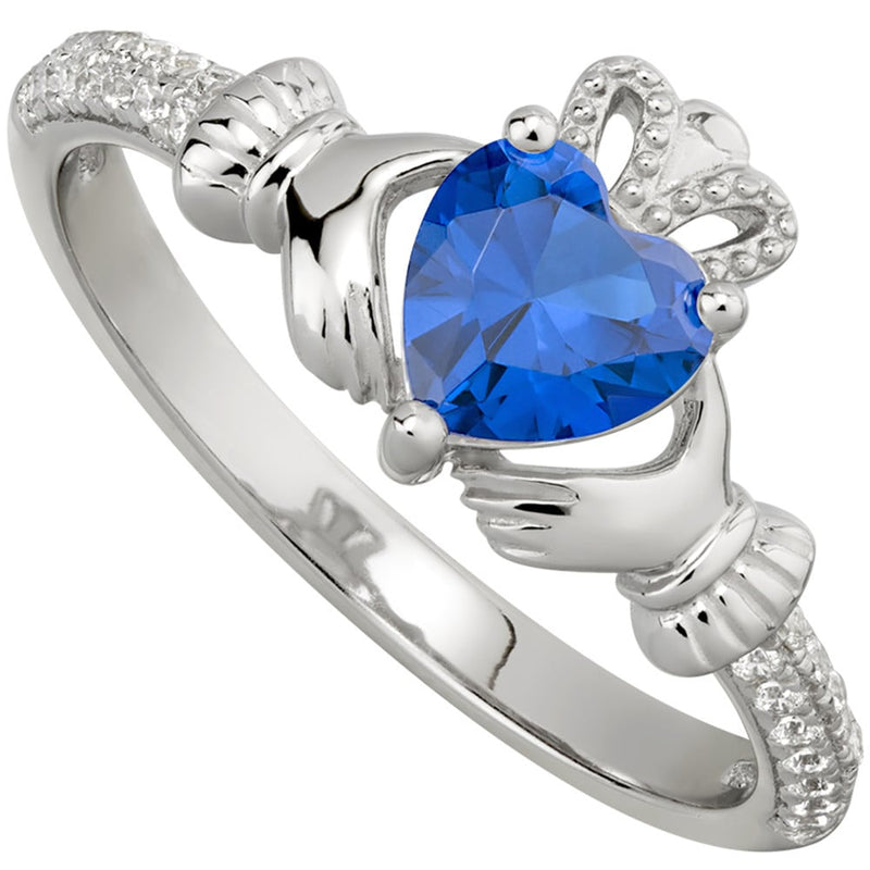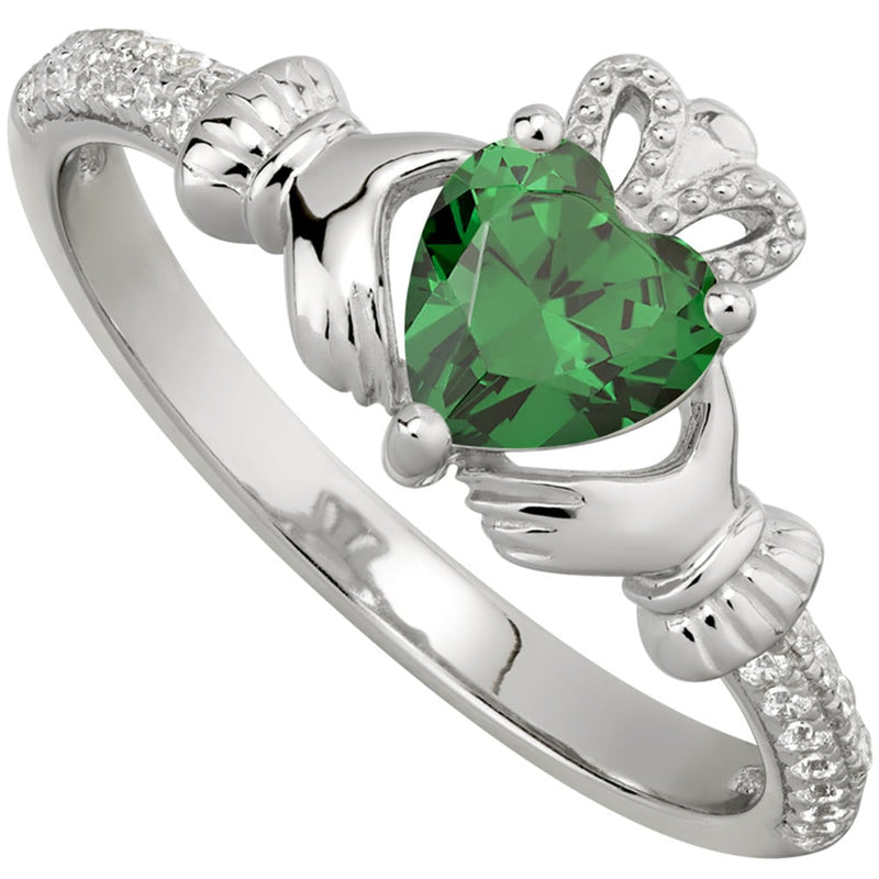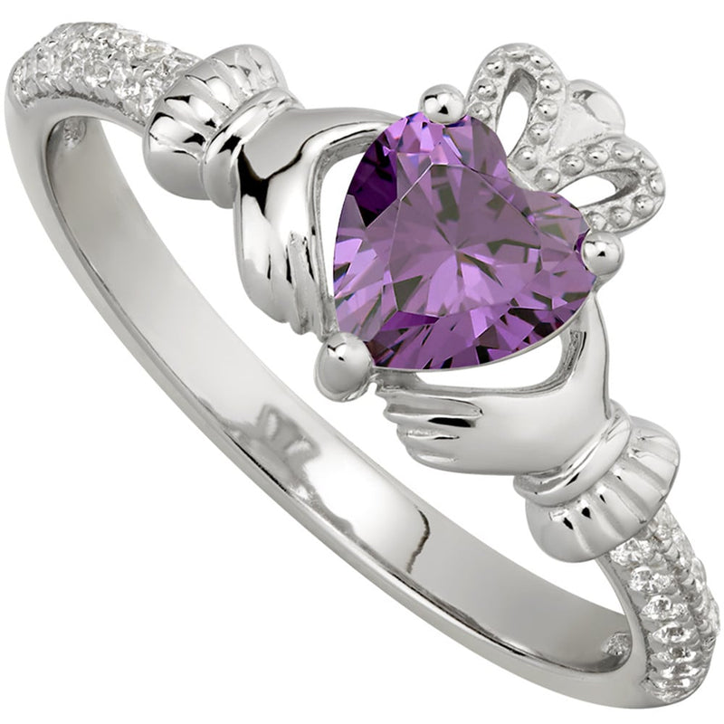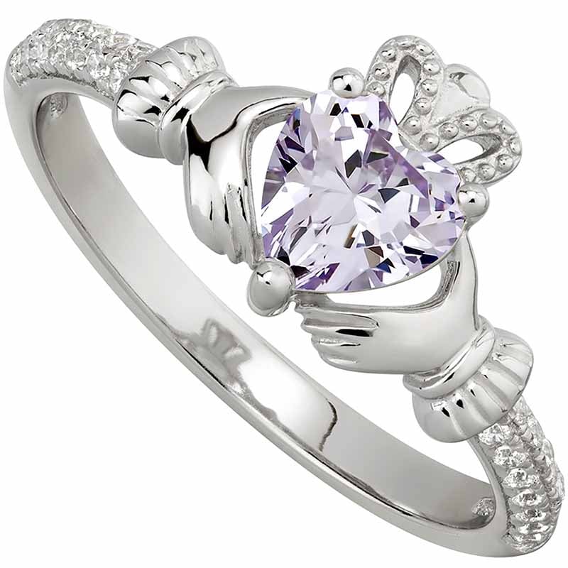 Irish Ladies Sterling Silver Crystal Birthstone Claddagh Ring