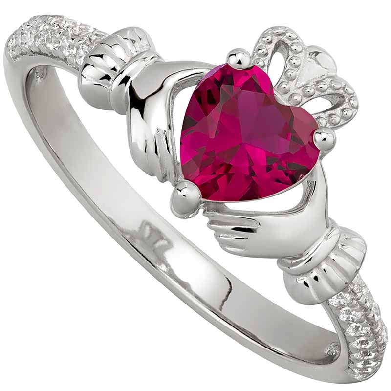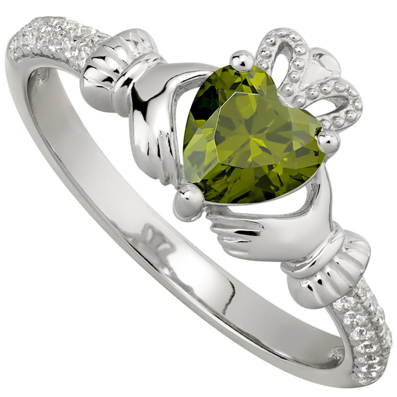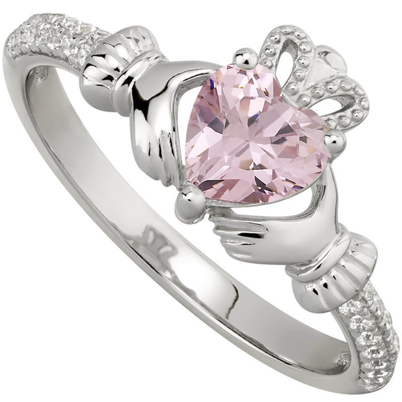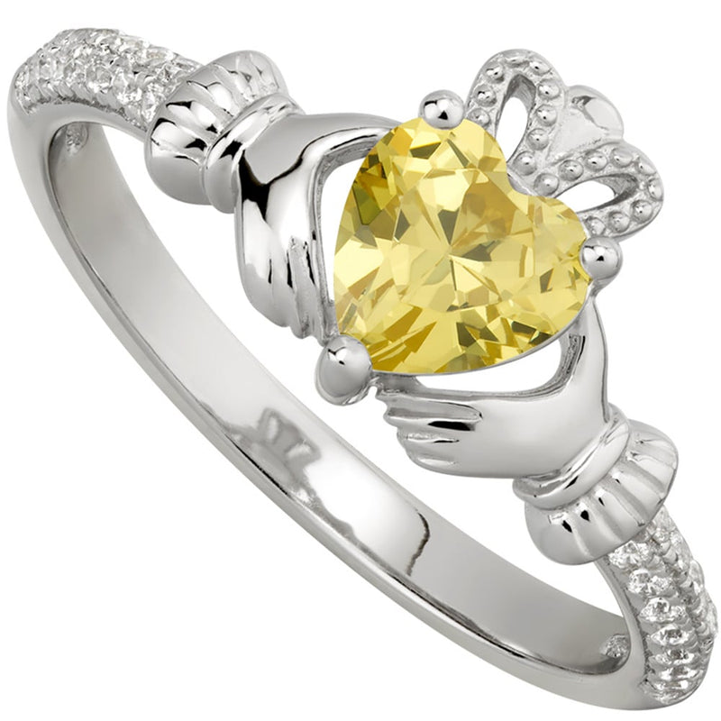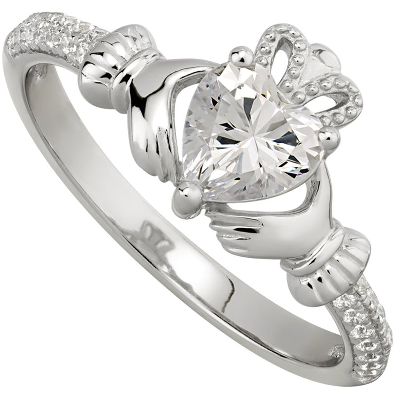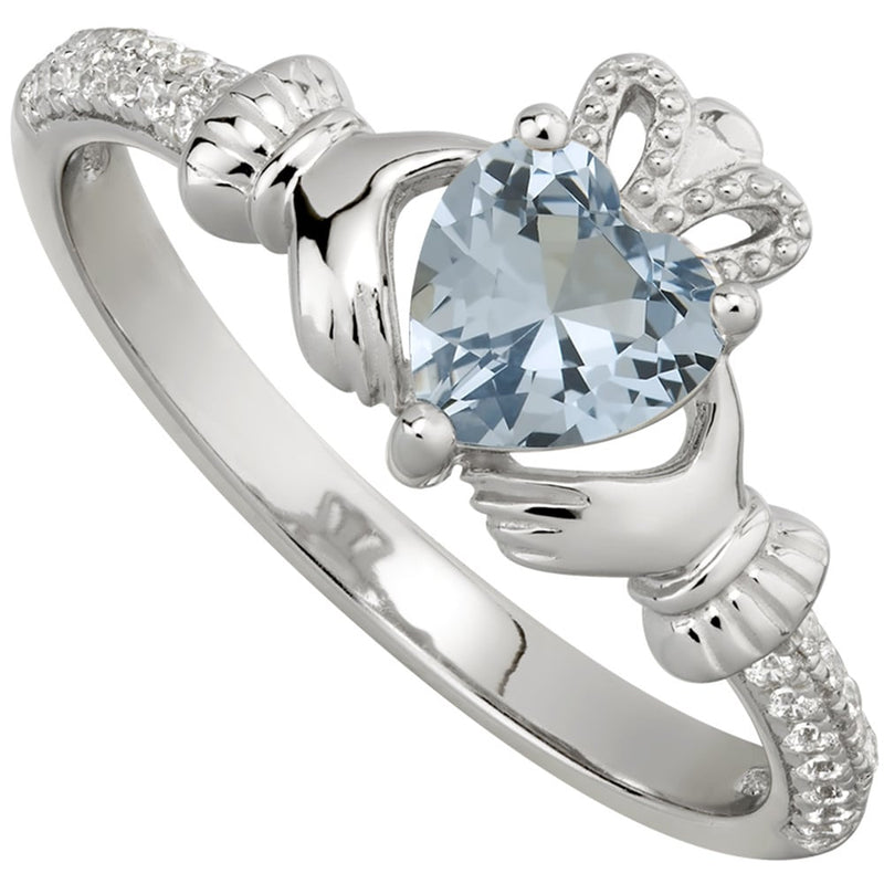 Irish Ladies Sterling Silver Crystal Birthstone Claddagh Ring