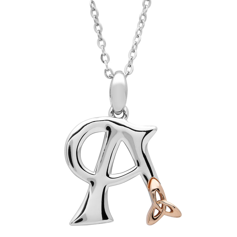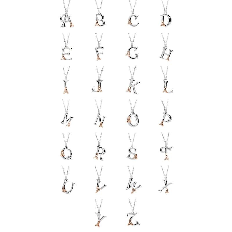 Irish Necklace | Celtic Initial Sterling Silver & Rose Gold Plated Trinity Knot Pendant
