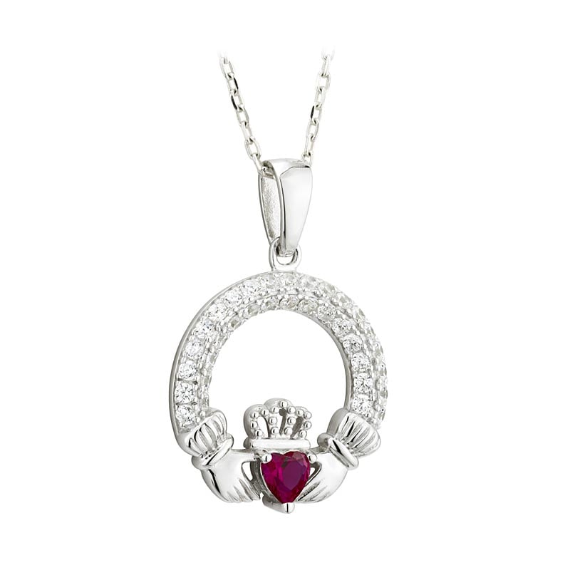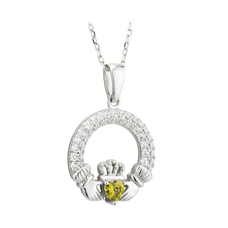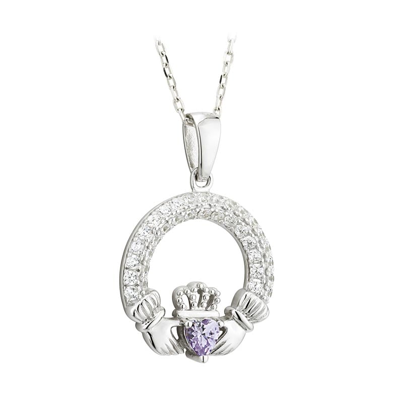 An Irish necklace with a personal touch. This Sterling Silver Claddagh Pendant features the Irish birthstone color of your choice at its heart surrounded by a halo of sparkling crystals. This superb necklace by Solvar Jewelry of Dublin Ireland makes an ideal gift for a special occasion and works with every look.