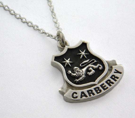 A truly distinctive way to show your Irish heritage. This sterling silver Irish Necklace is personalized with your name and coat of arms and in a traditional shield shape. Available with 18 inch or 24 inch chain. Pendant Size: 23mm X 23mm. Made in Ireland.