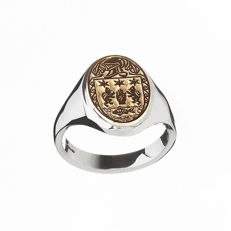 Irish Ring - Coat of Arms Sterling Silver and 10k Gold Ladies Heavy Solid Oval Heraldic Ring