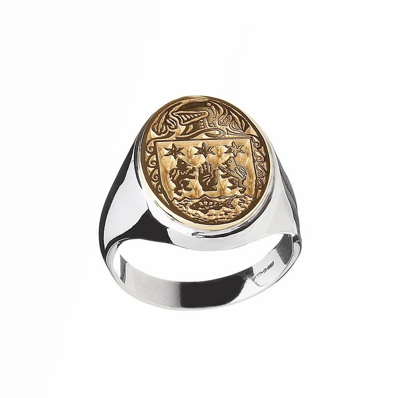 Irish Ring - Coat of Arms Sterling Silver and 10k Gold Mens Heavy Solid Oval Heraldic Ring