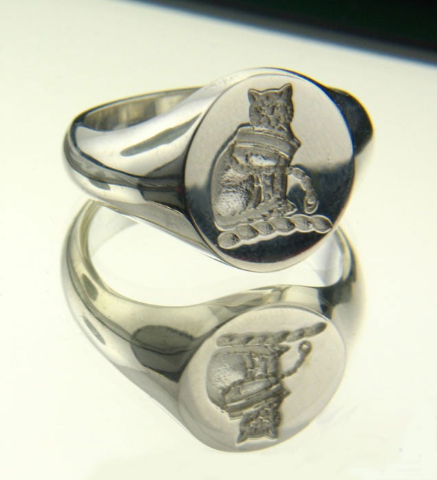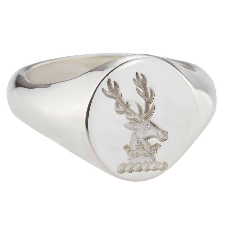 This Irish Ring is engraved by our highly skilled craftsmen to feature your own unique Family Crest. The 'Crest' is often confused with the Arms. The crest usually appears above the helmet in a full coat of arms artwork. Each family name would have a different crest. Our maker has extensive records, and will research any names upon request, if they do not already have them. Ring Face Size: .60 inches. Weight:11 to 17 grams, depending on Metal/ Ring Size. This ring is made to order. Please allow approx. 10-14 working days for this item to be completed. Made in Ireland and hallmarked by the Assay Office in Dublin Castle. Sizes 6-13 (including half sizes).