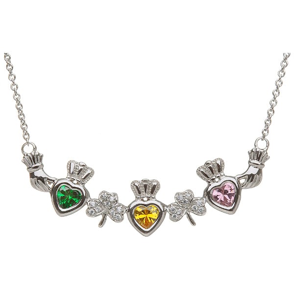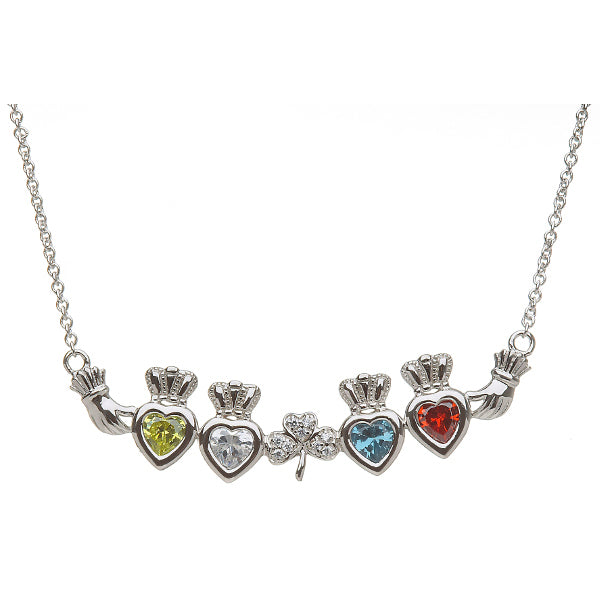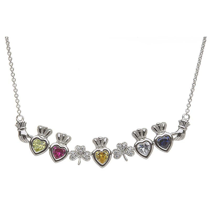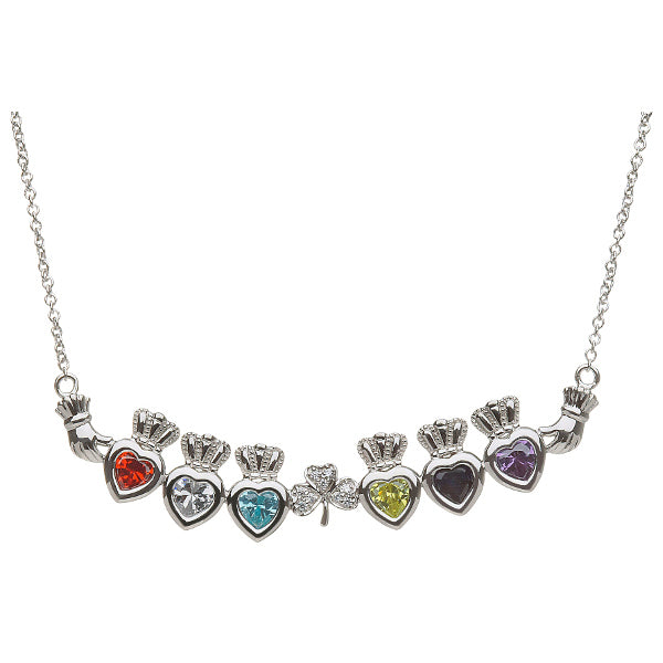 For every one of your loving children, grandchildren or even great-grandchildren, there’s a special birthstone on this Shamrock Necklace to remind you of them! Perfect for mother's day, birthdays or a special gift for your mother or grandmother. Keep your family close to your heart. Please select number of birthstones (up to 6 stones) and birth months in order from left to right. 18" chain. Handcrafted in Ireland by ShanOre Jewelry. Ships separately - please allow approx. 2 weeks for delivery.