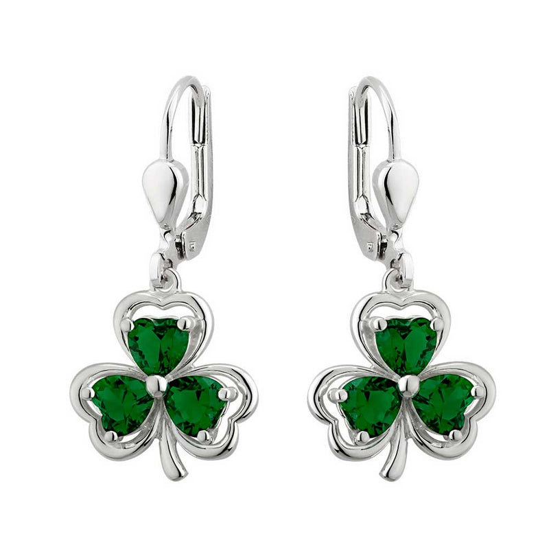 Irish Earrings | Sterling Silver Green Crystal Drop Shamrock Earrings