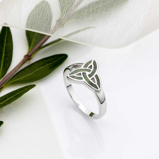 Irish Ring | Connemara Marble Sterling Silver Trinity Knot Ring