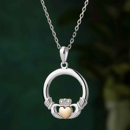 Irish Necklace | 10k Gold Heart Sterling Silver Claddagh Pendant