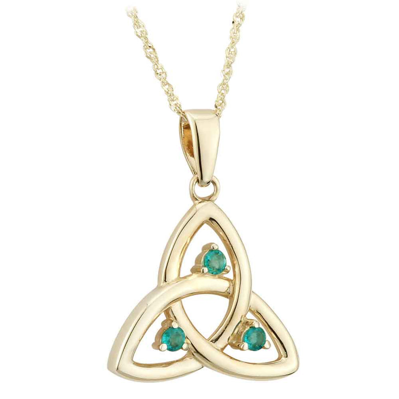 Celtic Necklace - 10k Gold Emerald Trinity Pendant