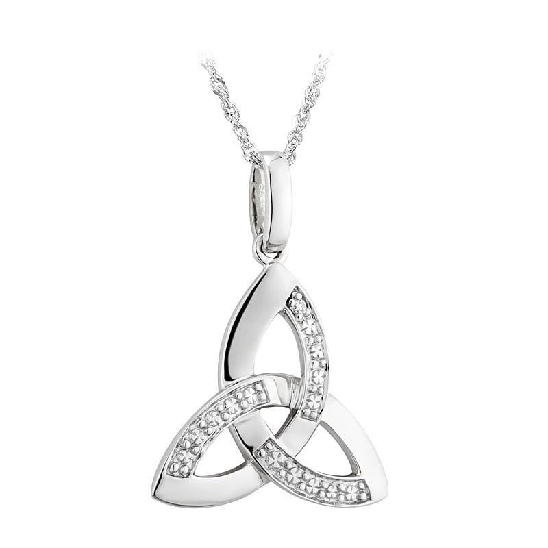 Celtic Necklace - 14k White Gold with Diamonds Trinity Knot Pendant