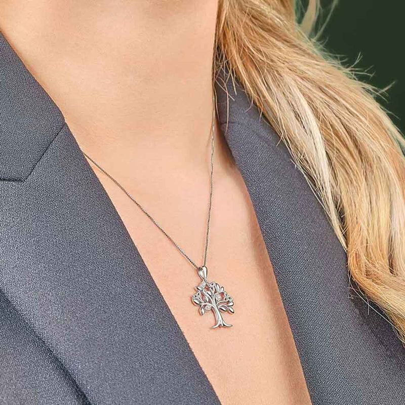 Celtic Necklace - Tree of Life Sterling Silver Crystal Irish Trinity Knot Pendant