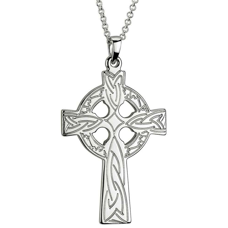Celtic Pendant - Men's Sterling Silver Engraved Celtic Cross Pendant with Chain