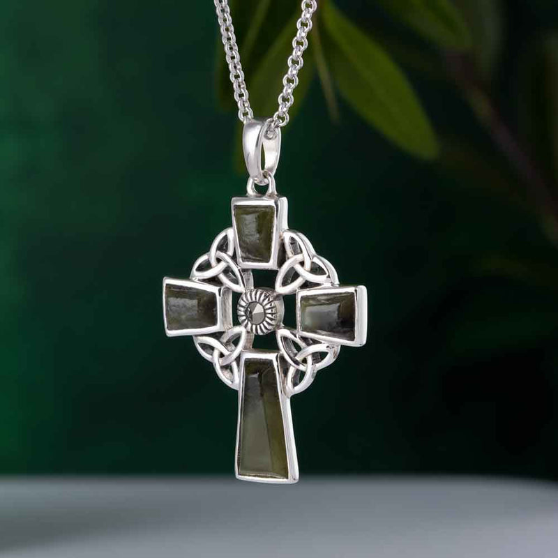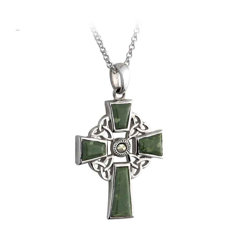 Celtic Pendant - Sterling Silver and Connemara Marble Celtic Cross Pendant with Chain