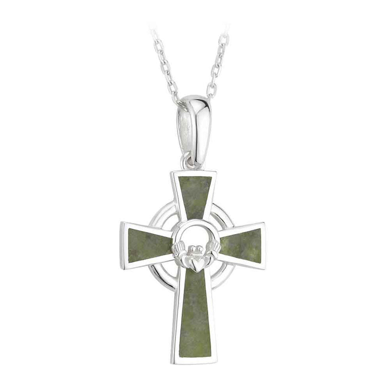 Celtic Pendant - Sterling Silver Connemara Marble Celtic Cross Pendant