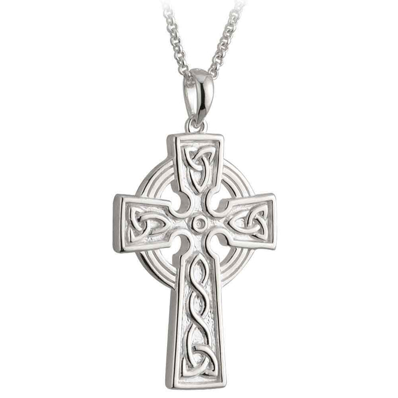 Celtic Pendant - Sterling Silver Large Double Side Cross Pendant with Chain
