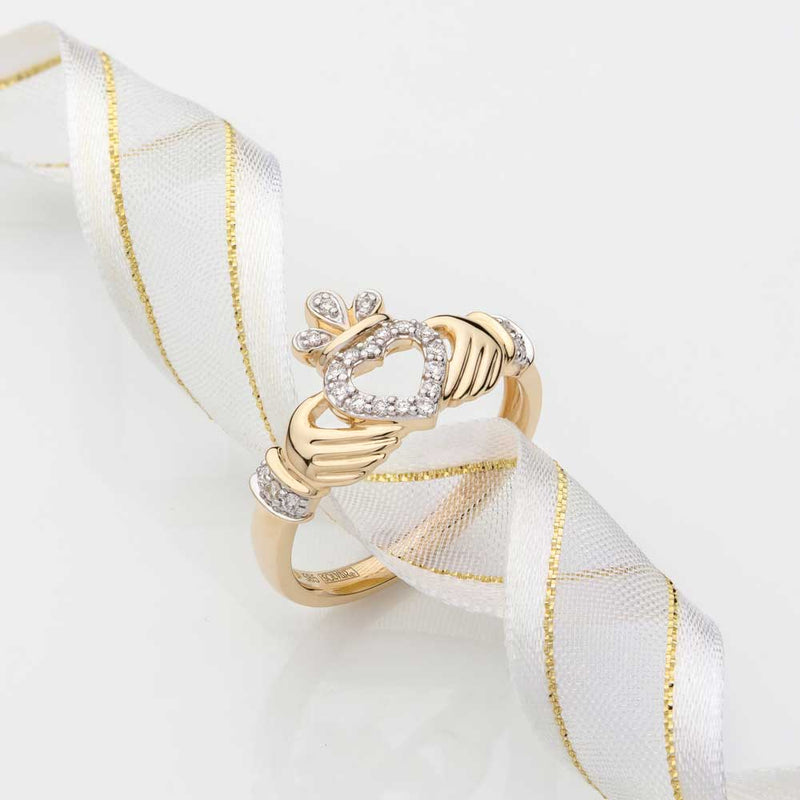 Claddagh Ring | Ladies 14k Gold Diamond Heart Irish Claddagh Ring
