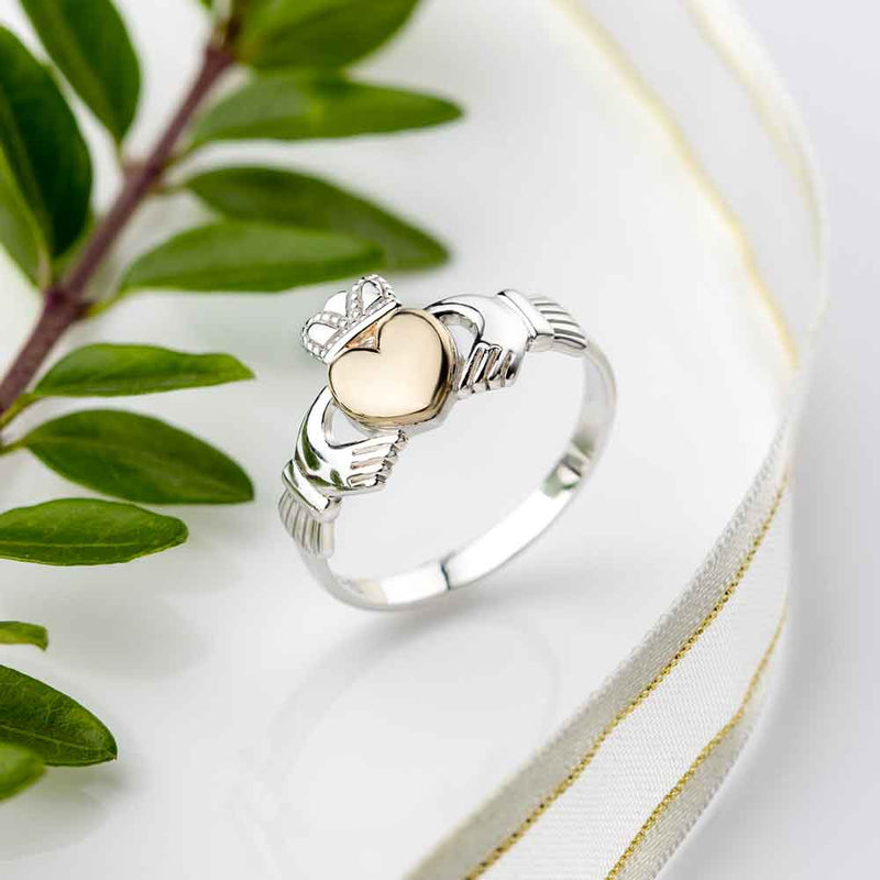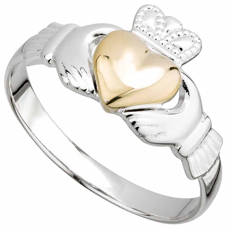 Claddagh Ring - Ladies Sterling Silver and 10k Gold Heart Claddagh Ring