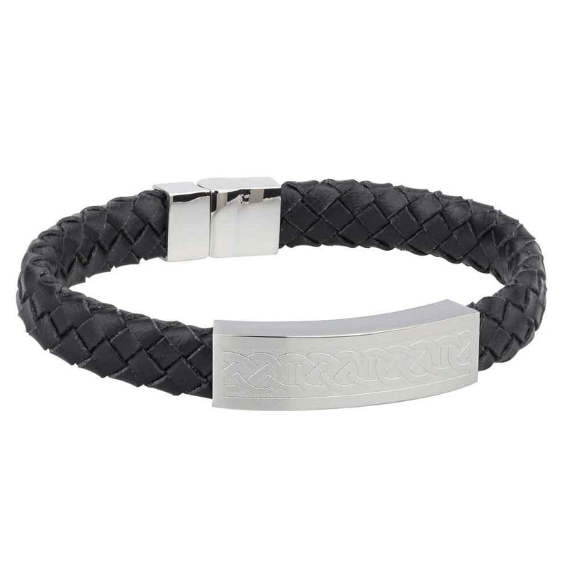 Irish Bracelet - Steel Men's Medium Black Leather Bracelet