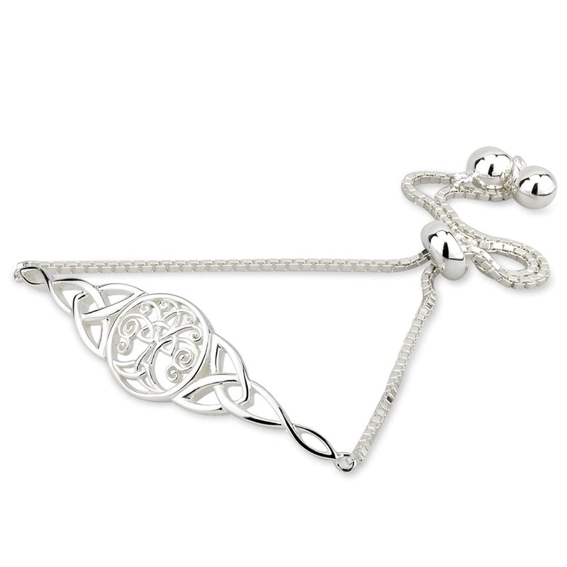 A Sterling Silver Bracelet which celebrates the very best of Irish Jewelry Design. The Celtic Tree of Life is elegantly situated in a circle, surrounded on either side by Celtic Trinity Knots. The tree of life symbolizes Irish heritage through its roots, Strength from its trunk and Growth in its leaves. The Trinity or Celtic Knot, represents eternal Love, Faith or Friendship as it has neither beginning nor end.