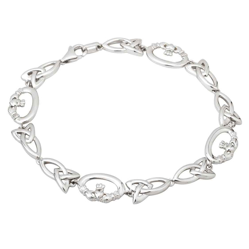 Irish Bracelet - Sterling Silver Claddagh and Trinity Knot Celtic Bracelet