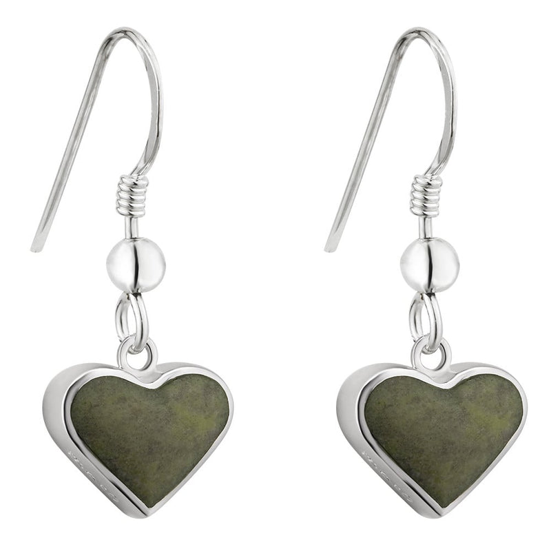 Irish Earrings | Sterling Silver Connemara Marble Heart Earrings