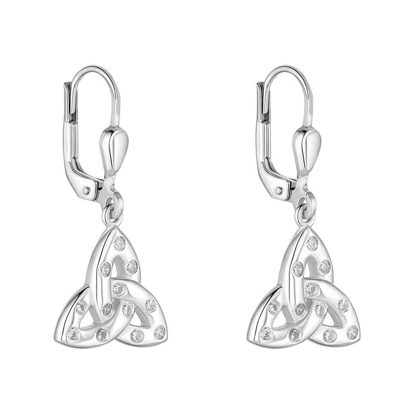 Irish Earrings | Sterling Silver Flush Set Crystal Drop Trinity Knot Earrings