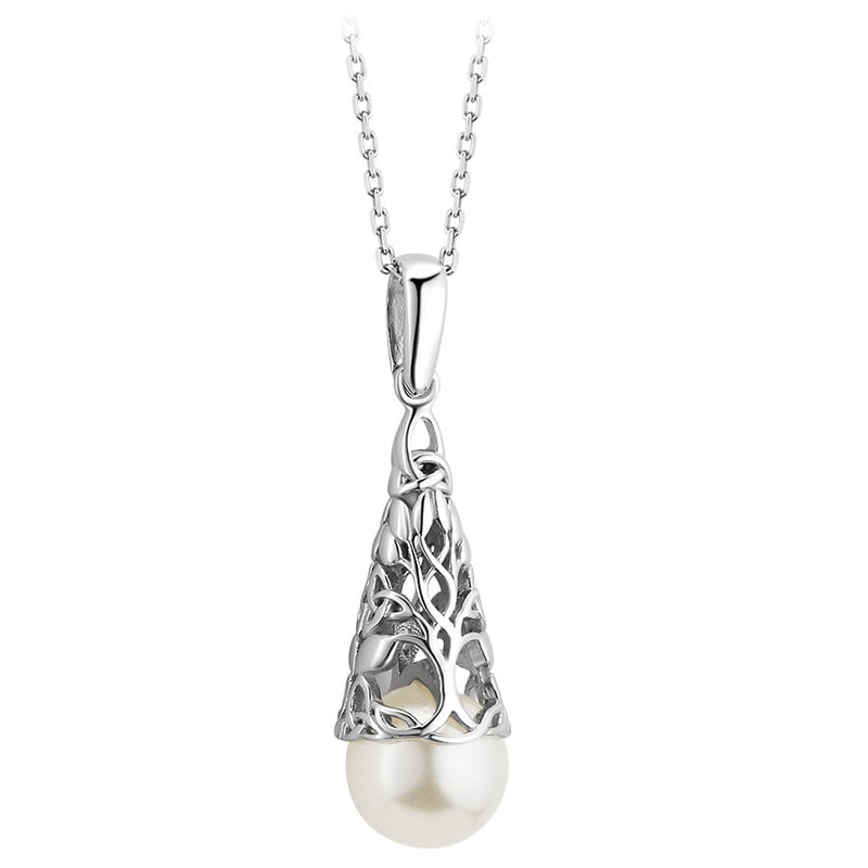 Irish Necklace | Sterling Silver Glass Pearl Trinity Knot Pendant