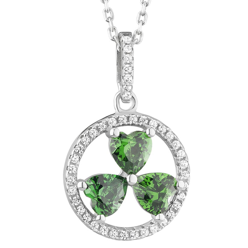 Irish Necklace | Sterling Silver Green Crystal Shamrock Pendant
