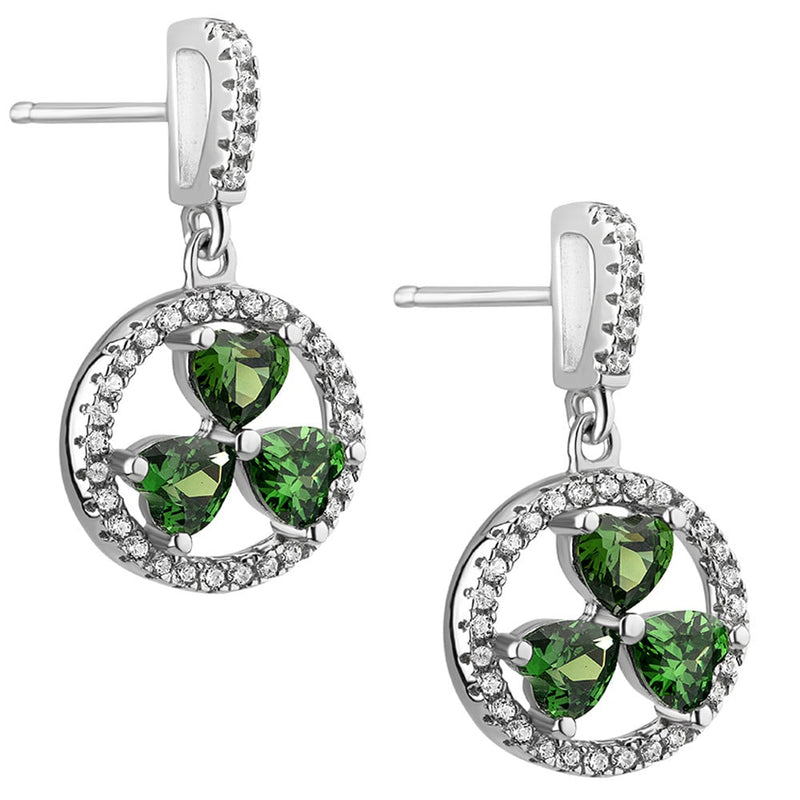 Irish Earrings | Sterling Silver Green Crystal Shamrock Drop Earrings