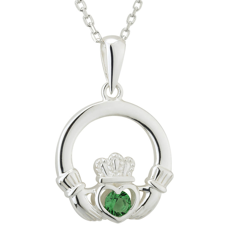 Claddagh Necklace - Sterling Silver Green Crystal Irish Pendant
