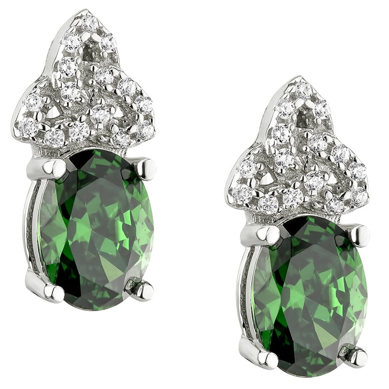 Irish Earrings | Sterling Silver Trinity Knot Green Crystal Celtic Earrings
