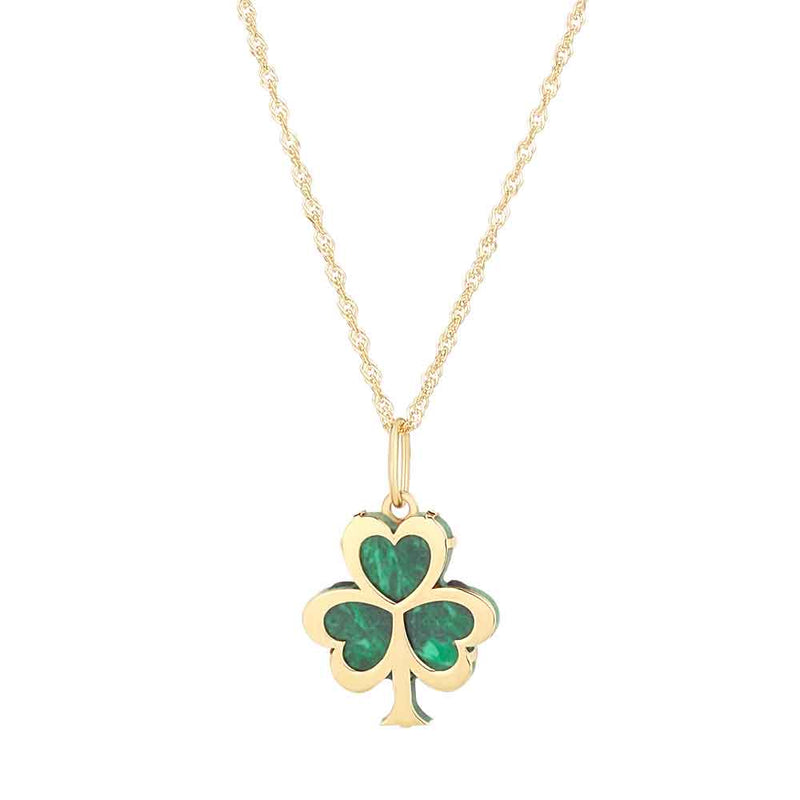 Irish Necklace | 10k Gold Malachite Shamrock Pendant