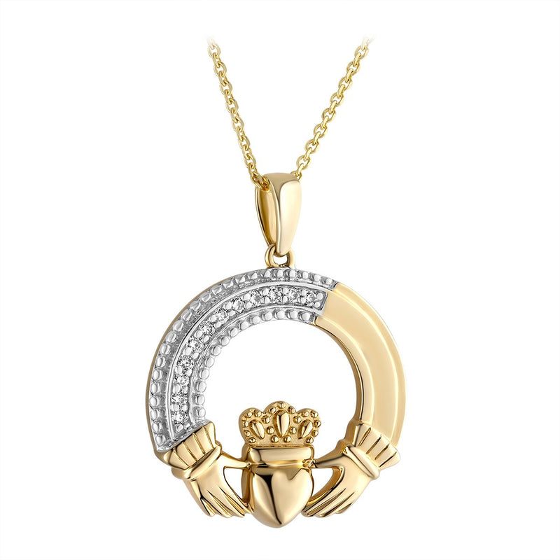 Irish Necklace | 14k Gold Diamond Claddagh Pendant