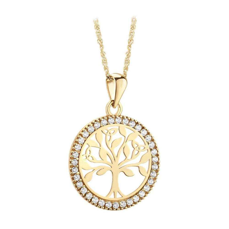 Irish Necklace | 14k Yellow Gold Diamond Circle Celtic Tree of Life Pendant