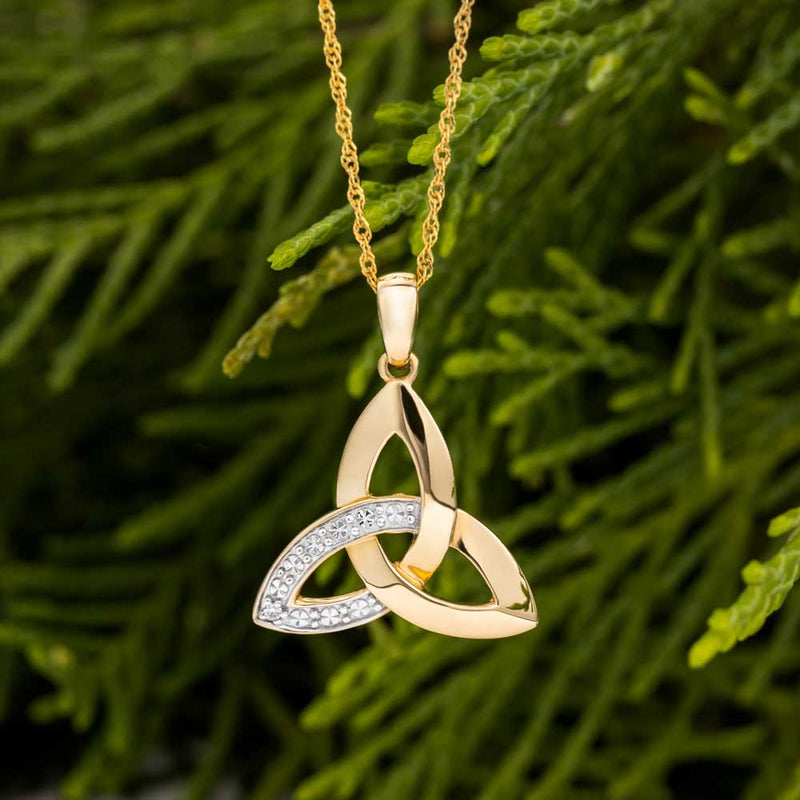 Irish Necklace | 14k Yellow Gold Trinity Knot Diamond Pendant