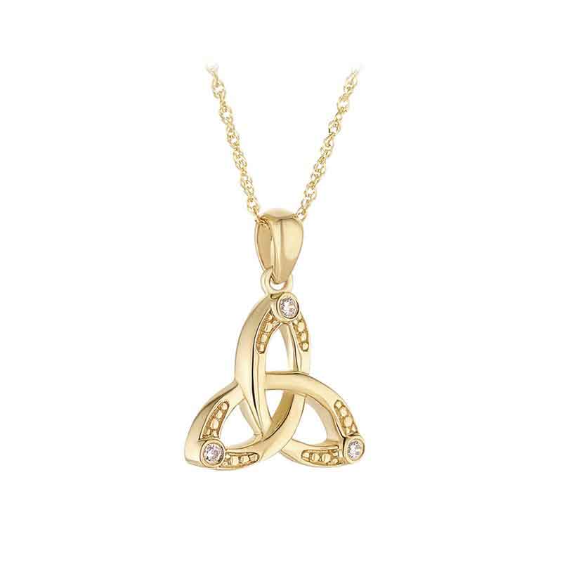 Irish Necklace | 9k Gold Cubic Zirconia Rubover Trinity Knot Pendant