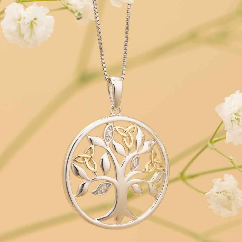 Irish Necklace | Diamond Sterling Silver and 10k Yellow Gold Celtic Tree of Life Pendant