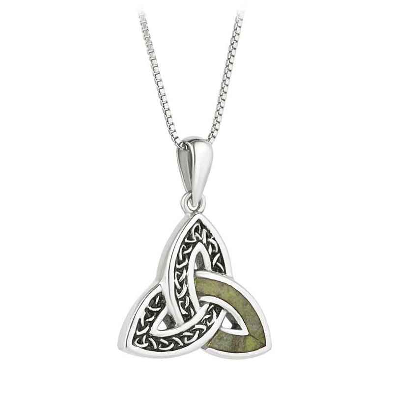 Irish Necklace | Sterling Silver Connemara Marble Accent Celtic Trinity Knot Pendant