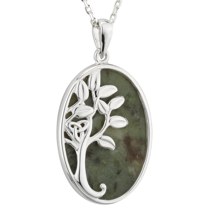 Irish Necklace | Sterling Silver Connemara Marble Celtic Tree of Life Green Pendant