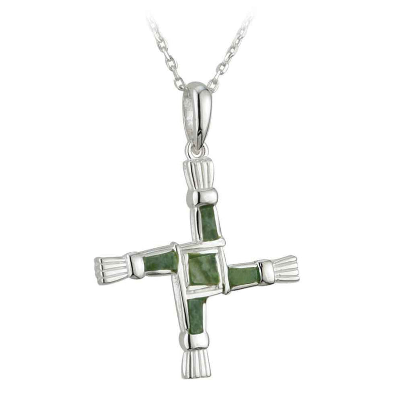 Irish Necklace - Sterling Silver Connemara Marble St. Bridget's Cross Pendant with Chain
