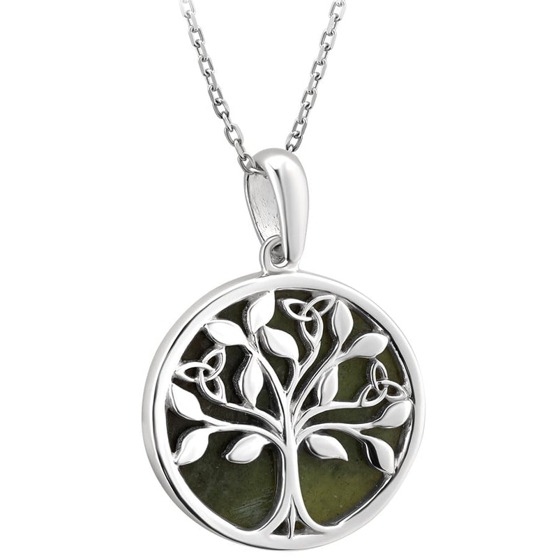 Irish Necklace | Sterling Silver Connemara Marble Trinity Trio Celtic Tree of Life Pendant